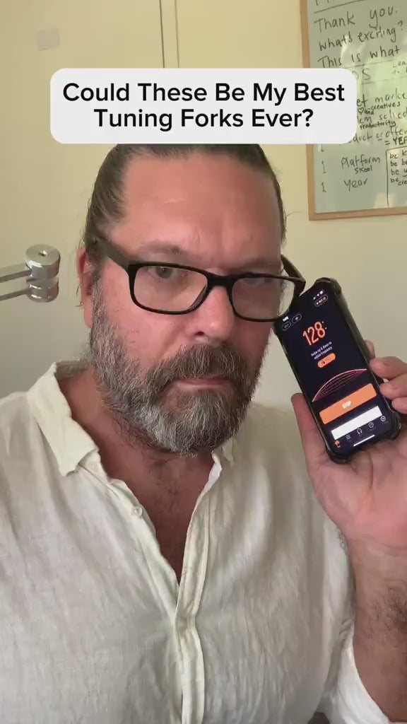 Our Harmony Set is perfect for beginners! It includes both weighted forks (128Hz and 136.1Hz) for physical relief and unweighted forks (256Hz and 384Hz) for mental clarity. The 128Hz is especially versatile - you'll feel immediate vibration and relaxation. Plus, our free guide walks you through everything step-by-step.