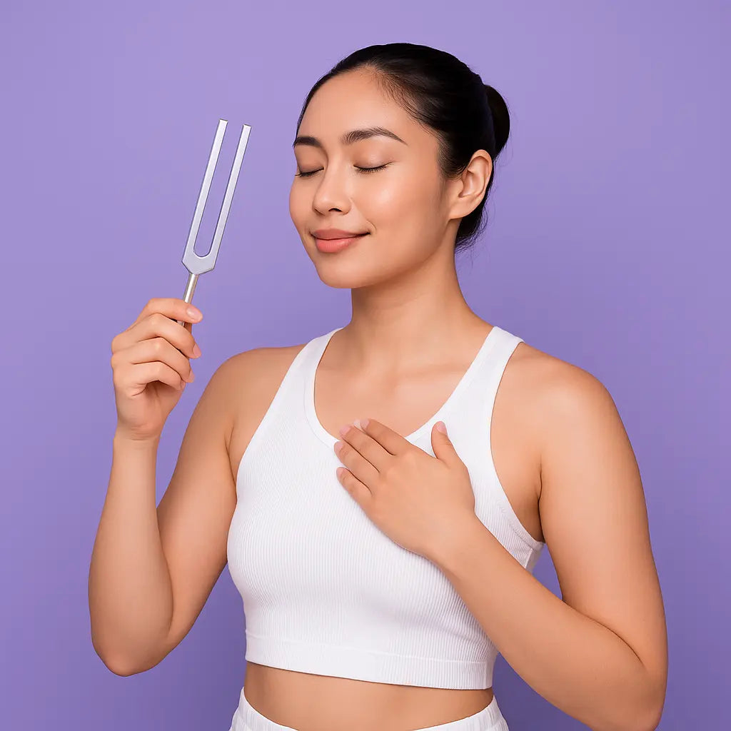 Tuning forks are very safe. Avoid placing them directly over pacemakers, insulin pumps, or recent surgical sites. Some people experience temporary lightheadedness or emotional release as tension releases - this is normal and passes quickly. Stay hydrated and start slowly.
